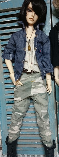 いつものデザイン切り替えパンツです。薄い迷彩柄と、無地とデニムが今の所あります。