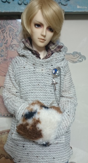 サイズ同じのネックが違うタイプ。のばせばこれぐらい萌え袖できます。