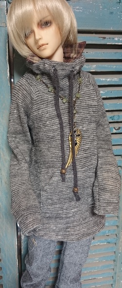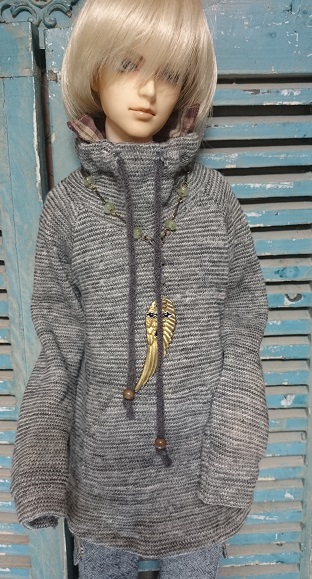 前に立ち上がりのあるパーカーでです。